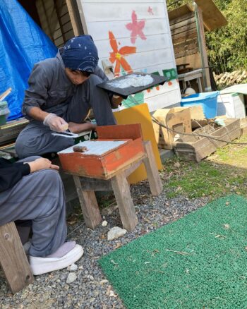 楽しそうに作業する人