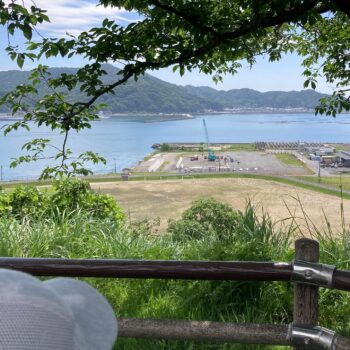 涼しいうちに、展望台から港を眺める