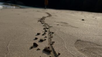 砂浜の表面だけがラングドシャのように薄く固まっており、