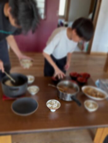 一緒にお昼ご飯を作りながら