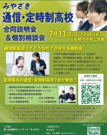 お知らせ・新着情報 みやざき通信・定時制高校合同説明会&個別相談会 2025年06月6日 色々な選択肢があること、知っておいてほしい。 知らずに困る人に出会った時に、こんなところもあるよ、と教えて欲しい。 前の記事へ 新着情報一覧へ戻る 次の記事へ