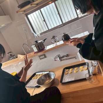 ご寄付でいただいた米粉とかぼちゃでクッキー作り。