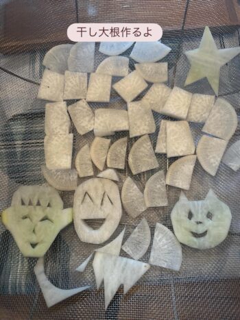 最後の2枚の写真は、彼らに切ってもらった切り干し大根のafter & before